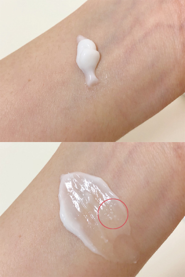 제형은 가벼운 크림 제형이에요. 펴바르다 보면 하얀 알갱이 같은게 느껴지는데 보습 성분인 필라씨드라고 해요. 몇번 문지르면 자연스럽게 없어집니다. 냄새는 허브 냄새가 살짝 나는데 강하지 않아서 호불호 갈리진 않을 것 같아요.