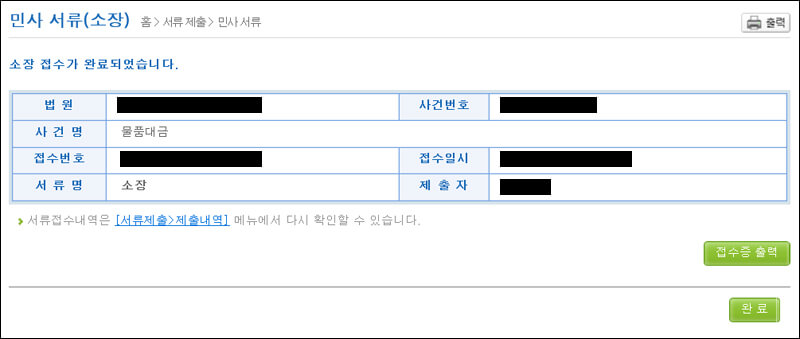 13. 제출하고 나면 관련 내용이 뜹니다. 사건번호도 여기서 확인할 수 있어요:-)