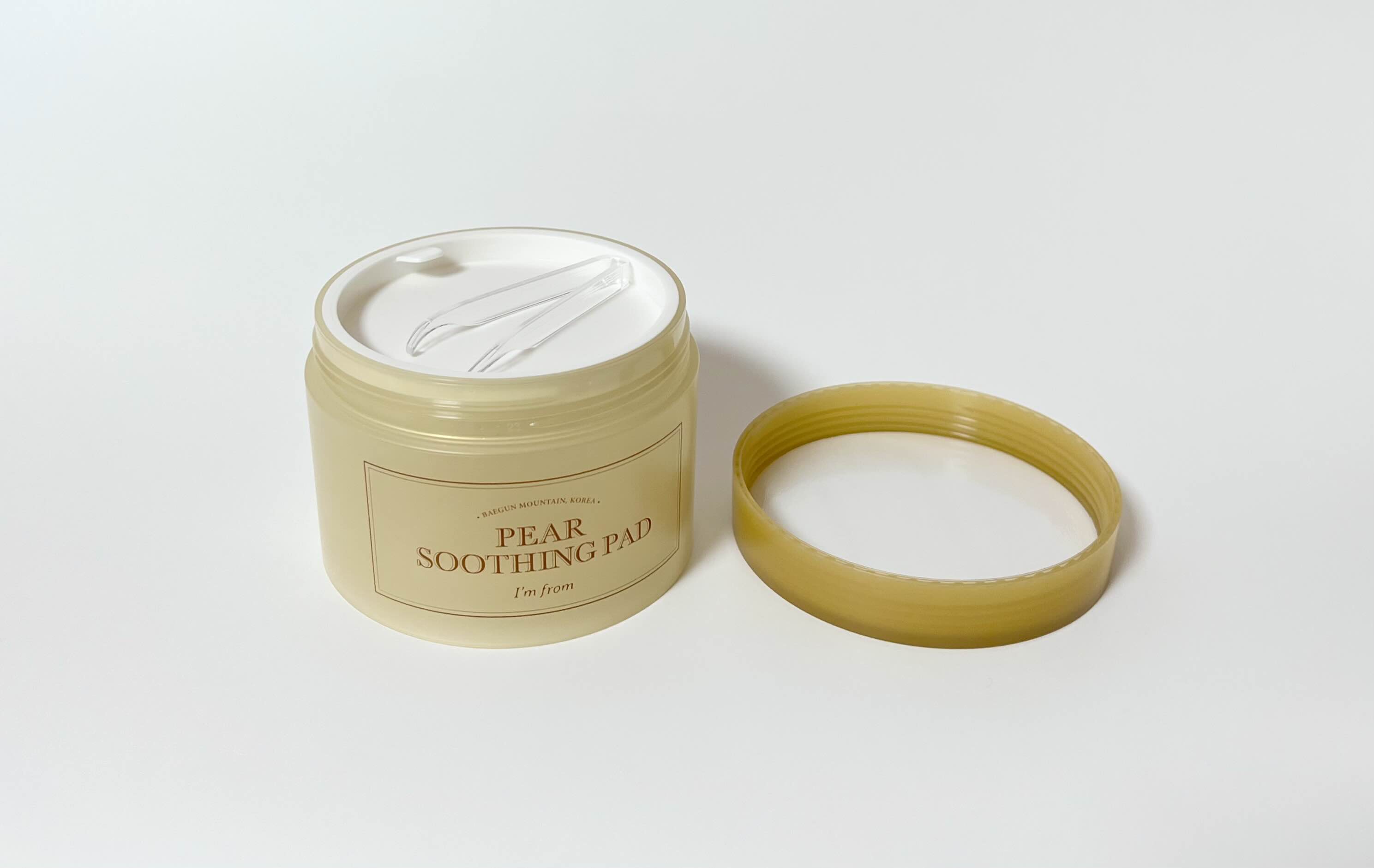 뚜껑은 돌려서 여는 타입이고, 중간 뚜껑이랑 집게도 있어요. 돌려 여는 타입이라 사용하기 불편하고 중간 뚜껑도 잘 안 열려요:-/ 중간 뚜껑 덕분에 패드가 마르지 않고 촉촉하게 유지되는 것 같지만 사용하기엔 불편합니다.
