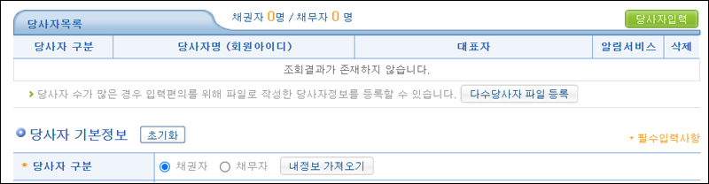 4. 당사자에 채권자와 채무자의 기본정보를 입력합니다.